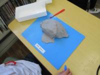 粘土を伸ばして長くしたり丸めたり、ねじったりするなど、表し方を工夫しながら楽しく食べ物を作っています。